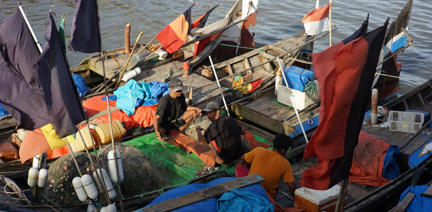 Nelayan di pesisir Dusun Sei Sembilang. | Foto: Dinar Try Akbar.