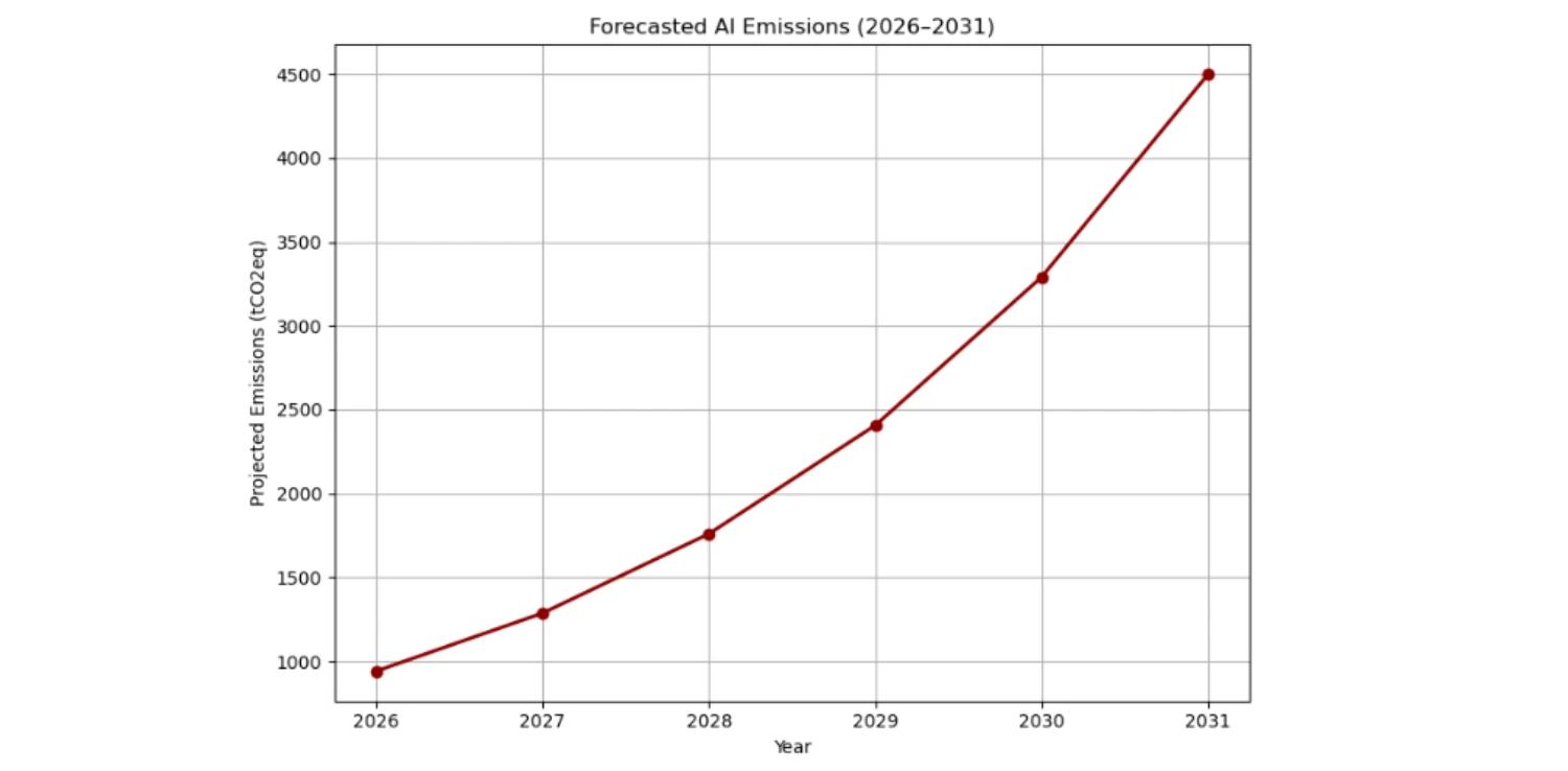 Linearitas ini memiliki implikasi yang luas. Melatih model mutakhir saat ini dapat menghasilkan karbon sebanyak emisi ratusan mobil seumur hidup. Terlebih lagi, tren ini semakin meningkat. Proyeksi emisi AI diperkirakan akan meningkat tiga kali lipat pada tahun 2031, dengan asumsi tingkat pertumbuhan tahunan 40% saat ini dalam komputasi AI terus berlanjut. Peningkatan yang diproyeksikan dari sekitar 1.000 menjadi 4.500 ton CO₂eq menggambarkan bahaya penskalaan yang tidak terkendali. Dunia sedang menyaksikan pengulangan sejarah industri, hanya saja kali ini polusinya tidak berasal dari cerobong asap, melainkan dari ambisi algoritmik.