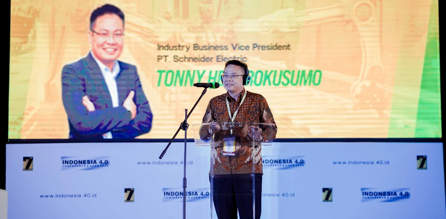 Tonny Hendro Kusumo, Business Vice President Industry & Process Automation Schneider Electric Indonesia, pada sesi Keynote Speech bertajuk Driving Sustainability Thru Digitization & Automation. | Foto: Schneider Electric.